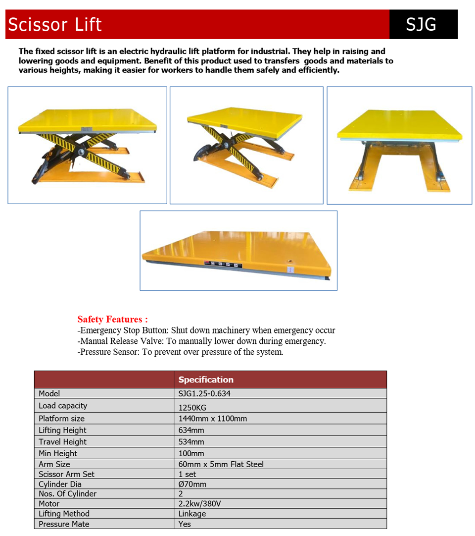 SJG Stationary Hydraulic Lifting Tables